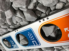 Bei dieser Methode der Oberflächentechnik drucken wir zunächst Farben in die offene Eloxalschicht des Aluminiums. Anschließend erzeugen wir eine oxidische und transparente Schicht, die den Druck vor chemischen und mechanischen Belastungen schützt.